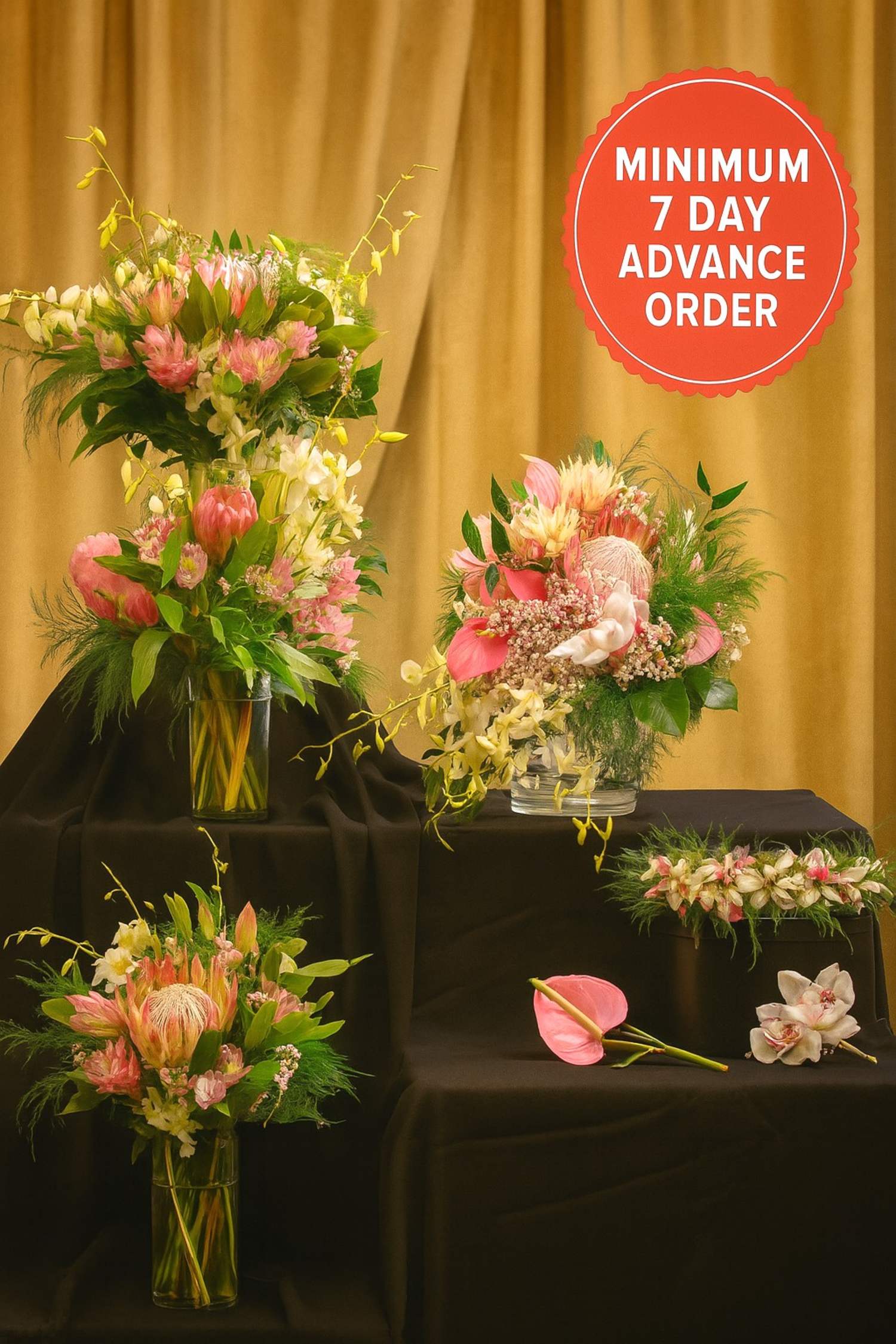 We provide custom wedding flower delivery to Ko'olau Ballrooms & Conference Center, using fresh, seasonal blooms thoughtfully designed to match your style and celebration. Whether you're envisioning elegant bouquets, romantic ceremony arrangements, or show-stopping reception centerpieces, our florists will create something truly memorable and one-of-a-kind.